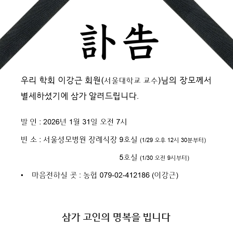 이강근 교수 빙모상 고인: 윤우필 빈소: 서울성모병원 장례식장 9호실(29일 오후 12시반부터) 5호실(30일 오전 9시부터) 발인: 31일 오전 7시 장지: 경북 구미시 산동면 선영